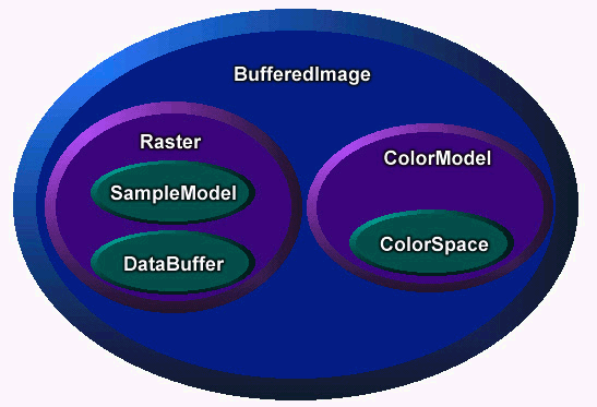 The ColorModel provides a color interpretation of the image's pixel data. The Raster represents the rectangular coordinates of the image, maintains image data in memory, and provides a mechanism for creating multiple subimages from a single image data buffer. The Raster also provides methods for accessing specific pixels within the image. For information about directly manipulating pixel data and writing filters for BufferedImage objects, see the Imaging chapter in the Java 2D Programmer's Guide.