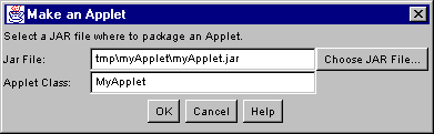 2. Choose File|Make Applet to bring up the MakeApplet dialog: