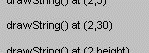 Note: Because some old browsers don't support 1.1, the above applet is a 1.0 version (here is the 1.0 code; here's the 1.1 code). To run the 1.1 version of the applet, go toexample-1dot1/TextXY.html. For more information about running applets, refer to About Our Examples.yargument is5, which leaves only 5 pixels above the baseline for the string -- not enough for most fonts. The middle string probably shows up just fine, unless you have a huge default font. Most of the letters in the bottom string display fine, except for letters with descenders. All descenders in the bottom string are cut off, since the code that displays this string doesn't allow room for them.Note: The text-drawing methods' interpretation of