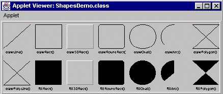 The shape-drawing example from before could be improved by choosing a font that's smaller than the usual default font. The following example does this and also enlarges the shapes to take up the space freed by the font's smaller height. Here is the improved applet: