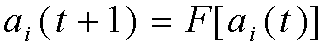 DONDE ai (t) REPRESENTA EL ESTADO DEL i-ESIMO AUTOMATA EN EL TIEMPO t Y F[ai (t)] ES UNA FUNCION DE LOS ESTADOS DE LOS AUTOMATAS QUE CONFORMAN EL SISTEMA EN EL TIEMPO t .