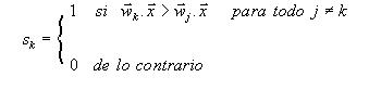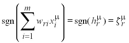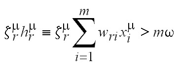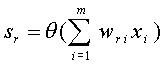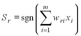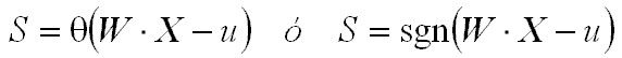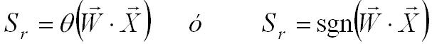 Donde: sr es la salida de la r‑ésima U. P., xi es la componente i‑ésima del patrón de entradas y wri es el peso sináptico correspondiente a la i‑ésima entrada de la r‑ésima U. P.