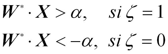 Para estos casos, el plano separador debe pasar por el origen de coordenadas. Si, por el contrario, el umbral se considera explícitamente en el cómputo de la U. P., entonces: