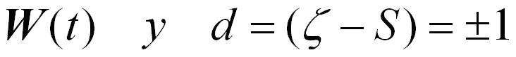 el vector de pesos del Perceptrón después de t correcciones y la diferencia entre la salida deseada y la salida real del dispositivo, en caso de error.