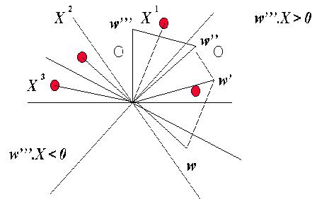 actualiza en una fracción del vector X, si su proyección w×X es menor que m k / |w|. El proceso se itera muchas veces hasta que todas las