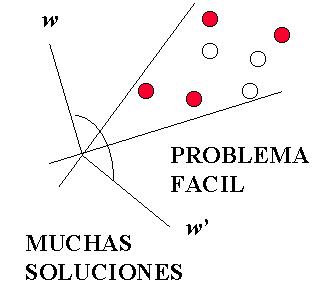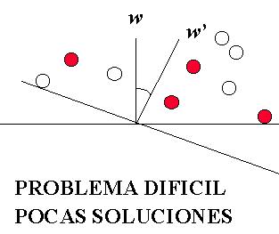 El hecho de que pueden existir muchas direcciones (o ninguna) de w para resolver un problema, permite la definición de un criterio para cuantificar el grado de dificultad del problema: