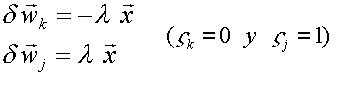 difiera de la clasificación correcta. En este caso se modifican los vectores de