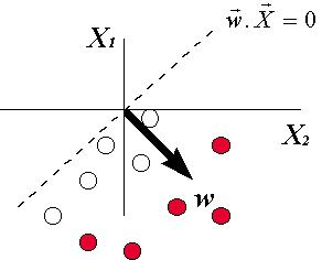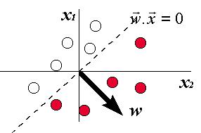 por el origen y es perpendicular al vector w. Por lo tanto, la condición de