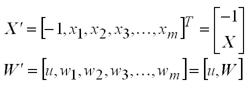 Inclusión del umbral. Hasta ahora, en las expresiones, hemos considerado UU. P. en las cuales o bien el umbral es cero o bien se coloca implícitamente como una componente adicional en el vector de pesos sinápticos (típicamente, la componente cero) junto con la señal de entrada correspondiente fija en el valor -1 en el patrón de entrada: